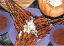 ~ Marinated beef or chicken pieces in skewers are barbecued over