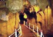 Access to the cave is by way of a suspension bridge. Wooden walkways provide