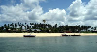 island surrounded by sandy beaches and perched on the northwest corner of a