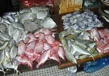variety of seafood in Sabah, along with vegetables, spices and oils, cheap