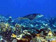 sights include blue ribbon eels, moray eels, barracudas, lobster, large coral