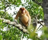 tree-dwelling proboscis monkey normally hunt for food in the evenings.