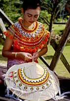 wood carvers or sword makers. There are exhibits of beadwork, bark