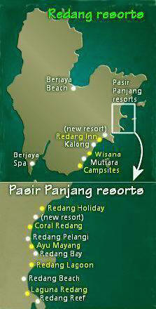 All the resorts are located at Teluk Kalong and Pasir Panjang on the